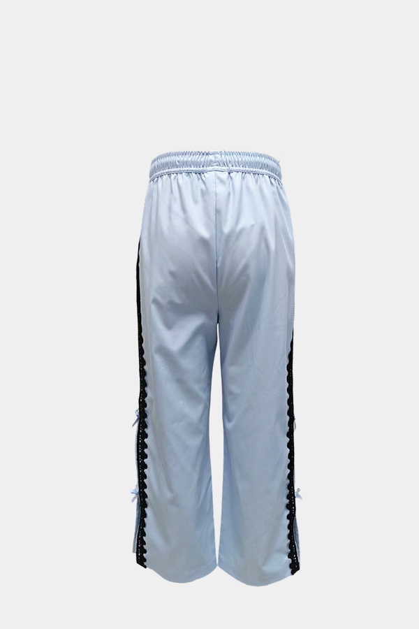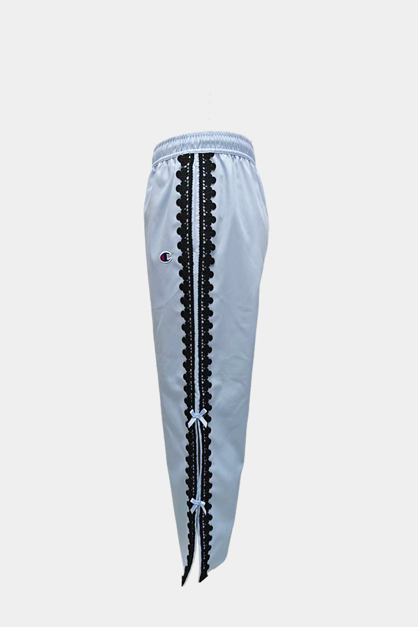 蕾丝侧开叉梭织长裤
